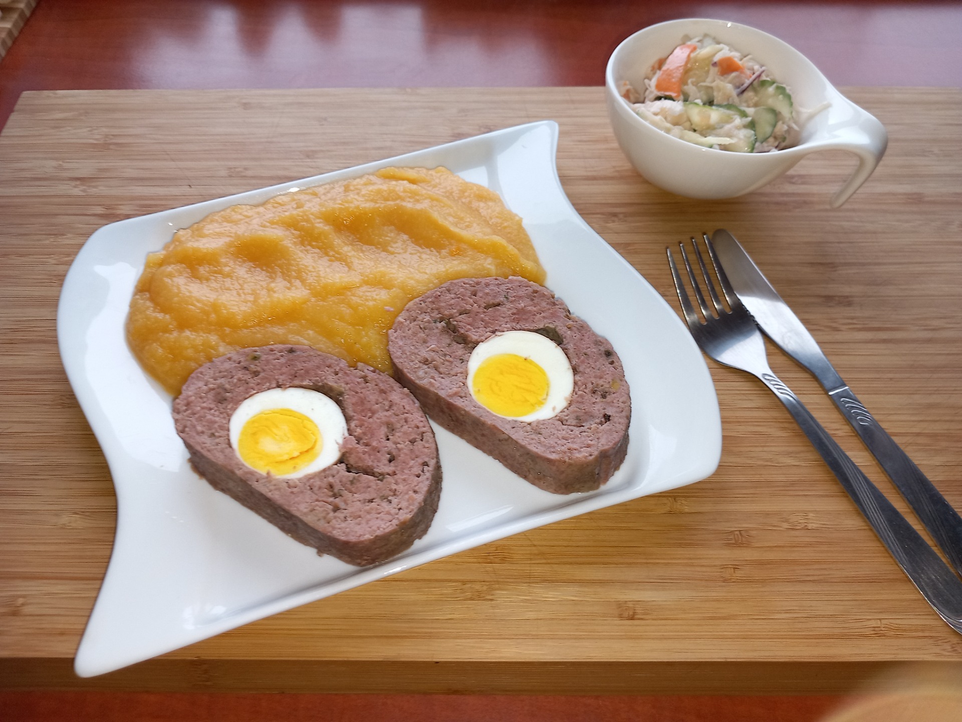 Na prostředek kladu za sebou vejce natvrdo v celku.