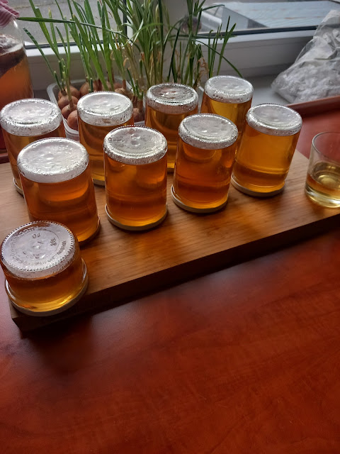 Na 1 kg cukru přidávám 2 citróny a 1 litr vody (dávky si pak zvětšuji podle potřeby vždy v tomhle poměru. na fotce jsou lahvičky ze 3 dávek)