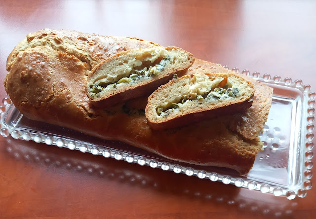 Tento plněný bylinkový chleba podáváme s čajem na Velký pátek (Velikonoční pátek). Můžeme také podávat s jehněčím masem a studenými mísami.