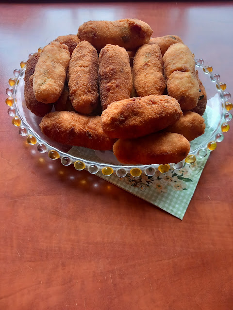 3-4 větší nastrouhané brambory (vařené ve slupce, oloupané), 5 nastrouhaných vajec natvrdo, jarní cibulku, pažitku, 100 g uzené slaniny, sůl, lžička mletého kmínu, těstíčko z 2 syrových vajec, 0,5 dl mléka a 4 lžic polohrubé mouky.